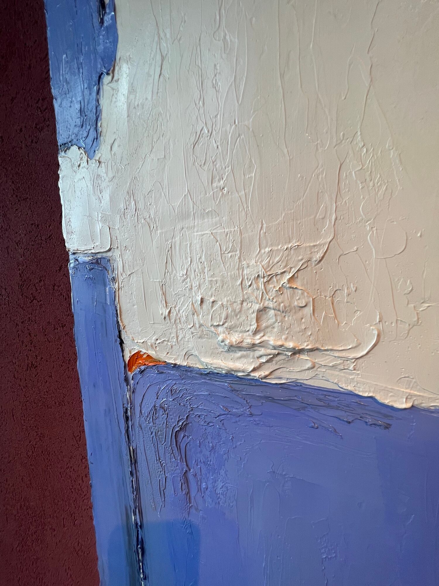 厚みのある絵の具とペインティングナイフを用いて、絵の具の個性と魅力を追求している。