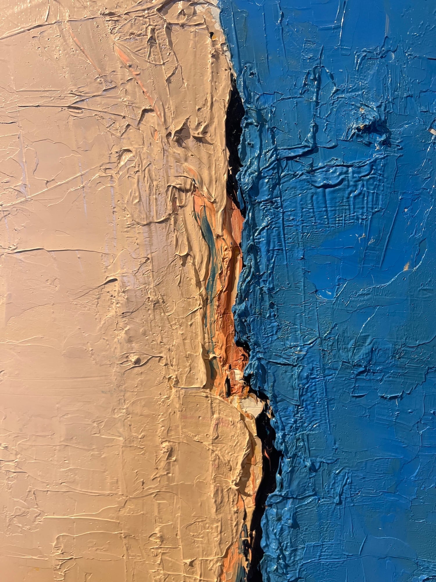 もったりとした絵の具の重さ、キャンバスの弾力に手が喜び、
