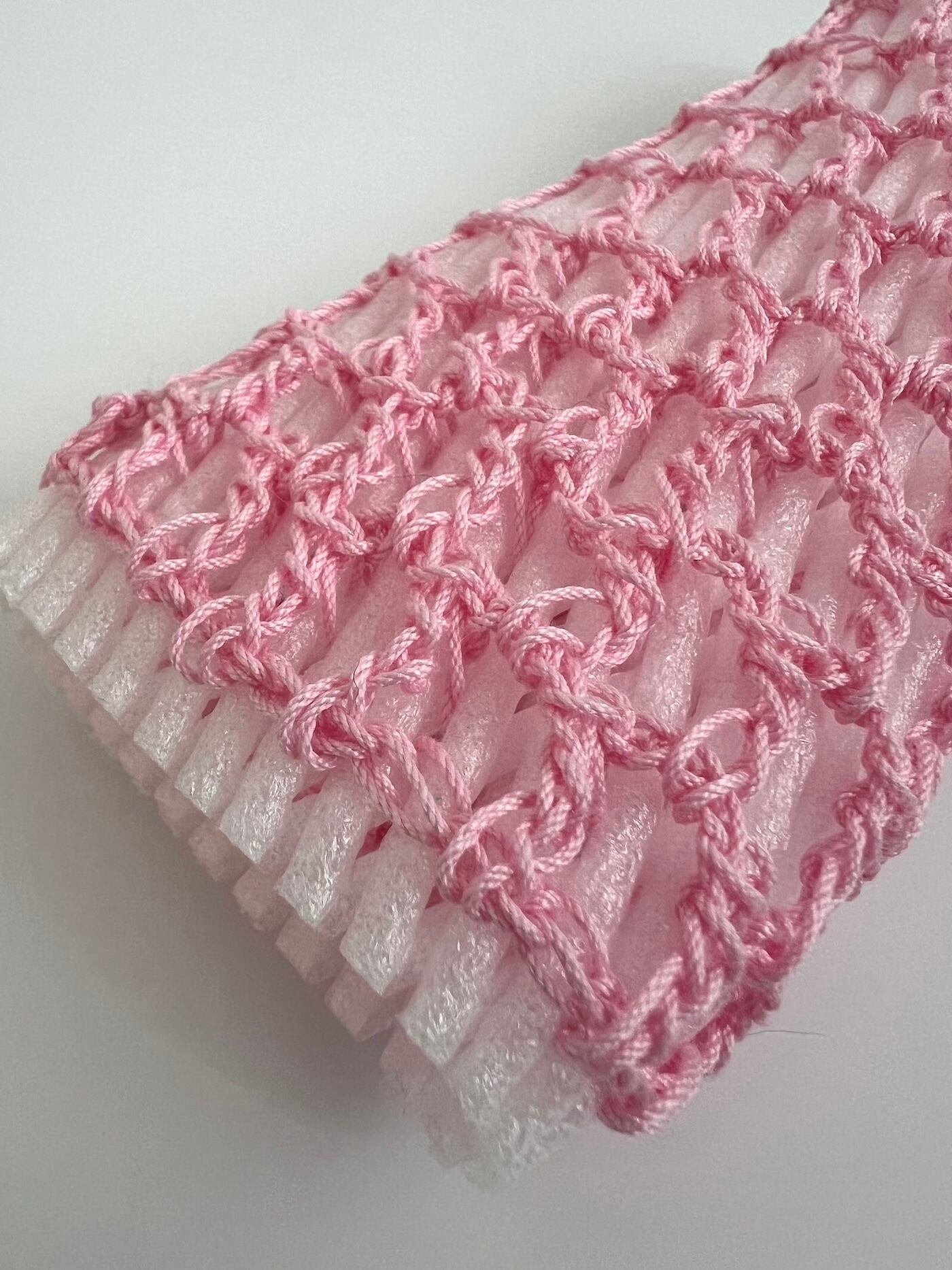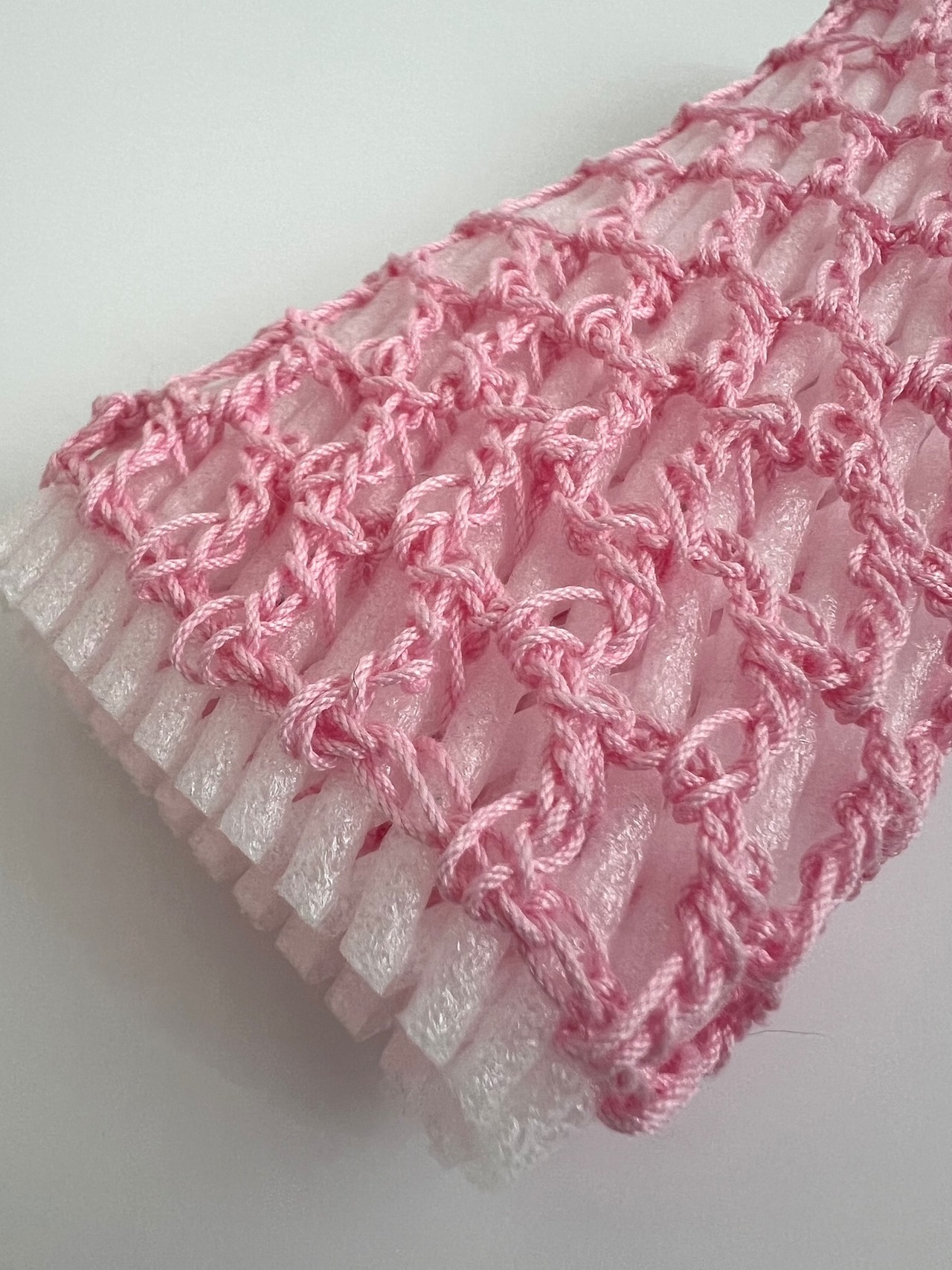 かぎ針編み作家。柔らかい素材で硬い質感をかぎ針編みで表現しようと、グラフィックデザイン 的アプローチから生まれる幾何学モチーフの立体作品を作り始める。かぎ針編みでの表現方法を 試行錯誤しつつ、最近は菌類などから着想を得た奇妙な生物を制作している。