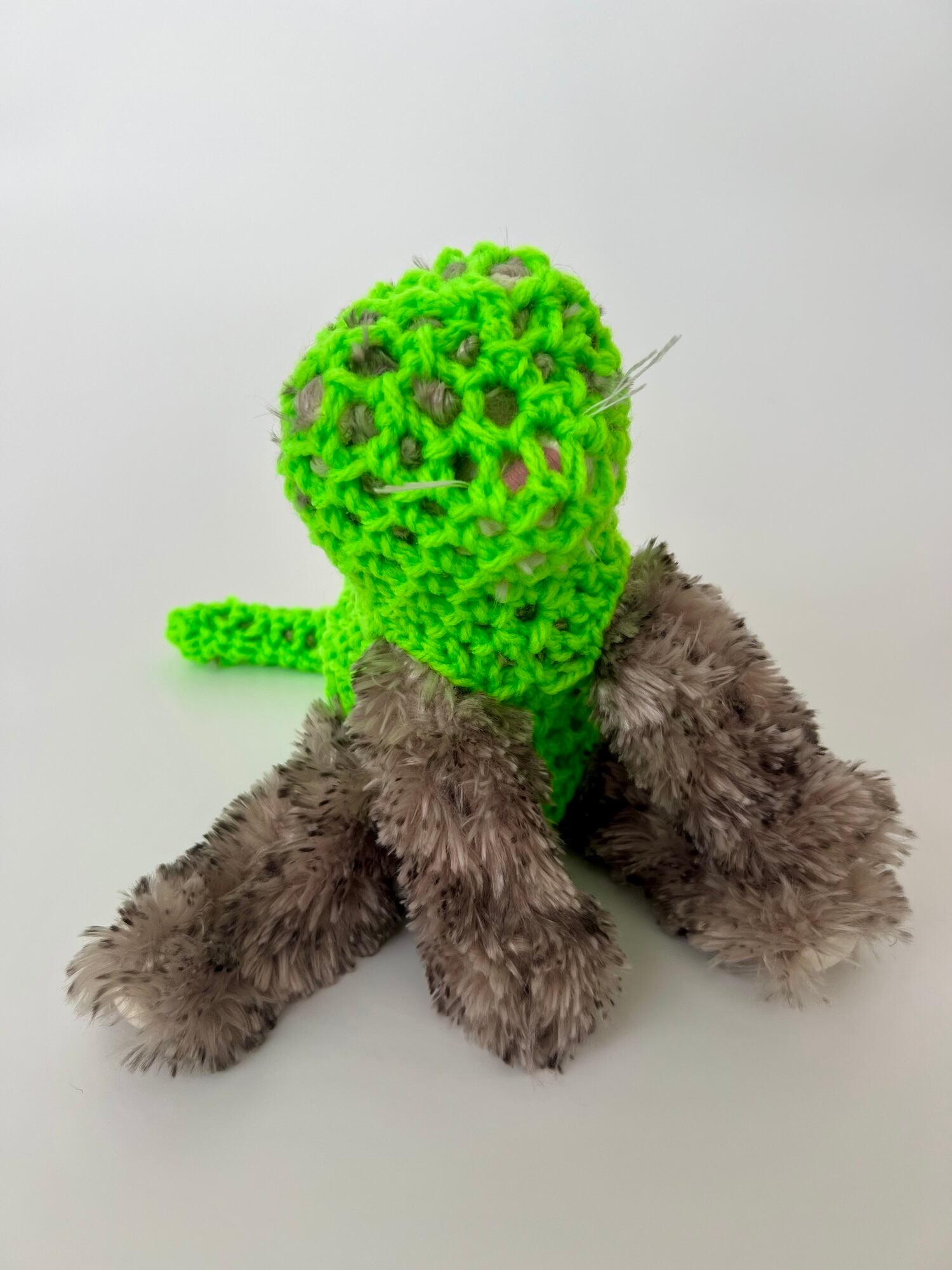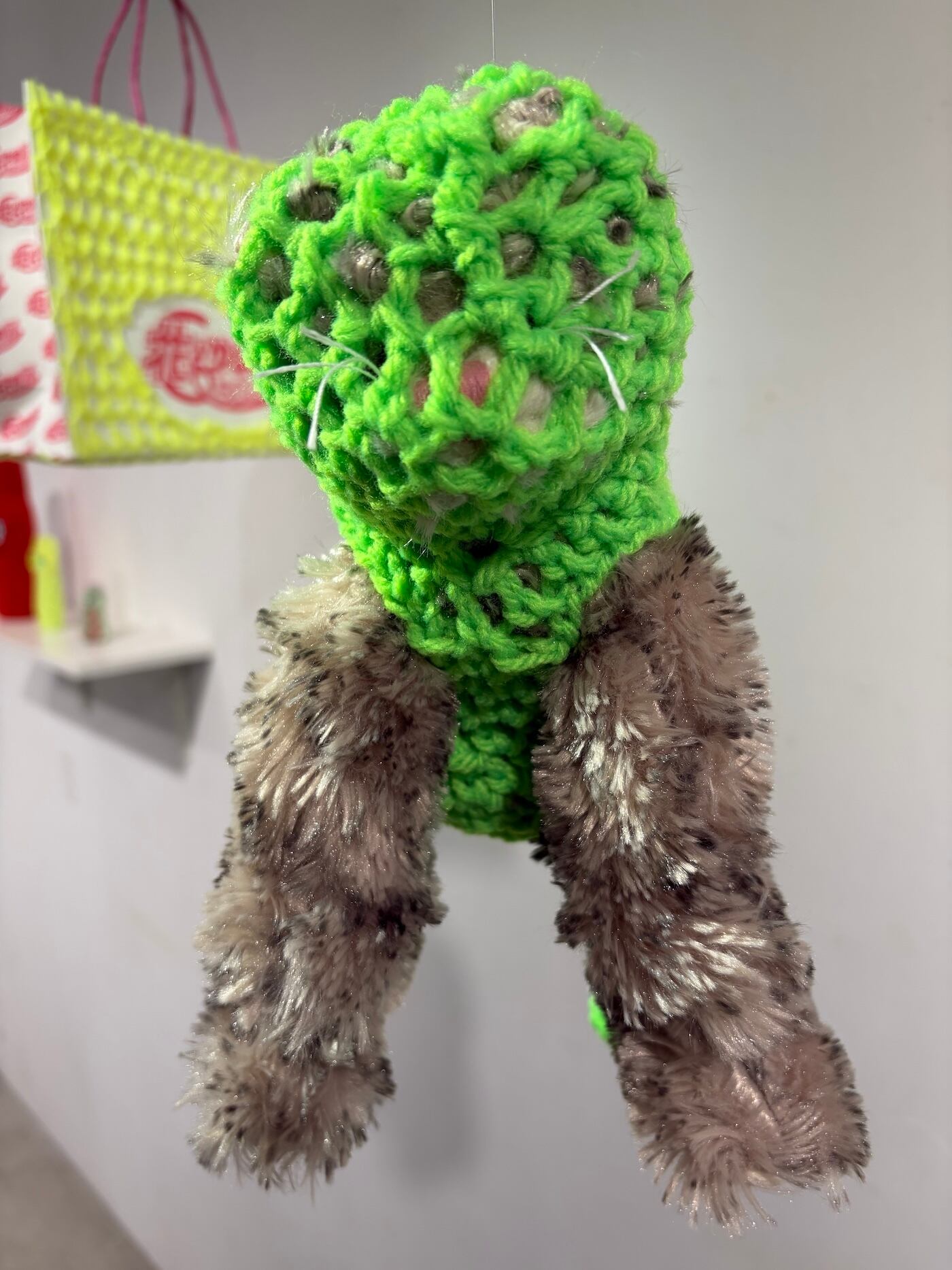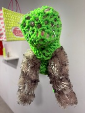 Crochet artist. Beginning with a graphic design approach, she started creating three-dimensional works featuring geometric motifs, aiming to express hard textures using soft materials through crochet. While experimenting with crochet techniques, she recently began creating strange creatures inspired by fungi and other organisms.