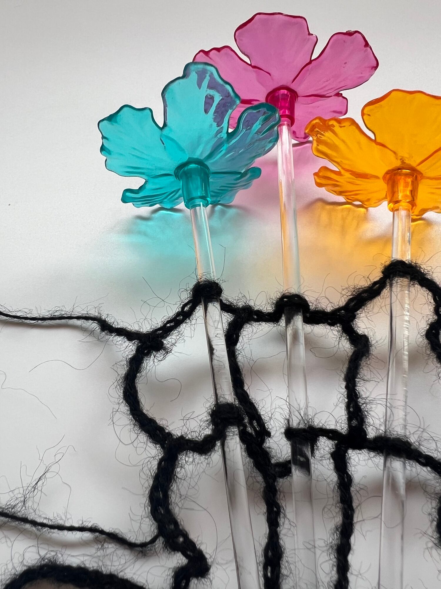 Crochet artist. Beginning with a graphic design approach, she started creating three-dimensional works featuring geometric motifs, aiming to express hard textures using soft materials through crochet. While experimenting with crochet techniques, she recently began creating strange creatures inspired by fungi and other organisms.