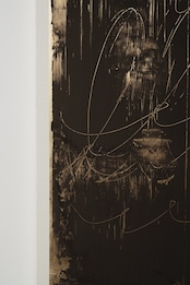 Shigeru Yamada's works exist as physical objects while simultaneously incorporating elements such as the surrounding air and light, the distance from the wall, and the gaze and presence that arise between the work and the viewer. His compositions reflect the philosophy of wabi-sabi, treating elusive elements like negative space, silence, and resonance in a sculptural manner. In his process, combining different materials creates contrasts and misalignments, giving rise to accidental expressions. Rather than striving for perfection, he deliberately leaves works unfinished to stimulate the viewer's imagination. By actively retaining traces of manual labor, he imbues the pieces with an inherent sense of time and physicality.