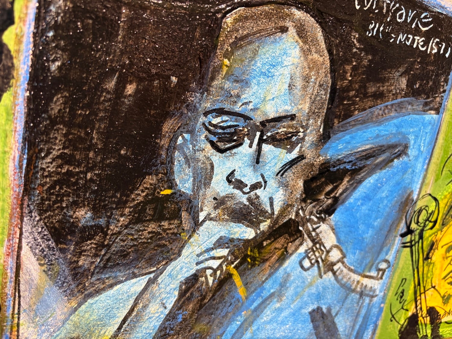大阪・天満橋で47年間に渡り小さなジャズバーを営む、さかなしてつろう。 紙皿をパレットに、ペンキを画材に、営業時間外の店内をアトリエに作品を制作するさかなし。コルクボードのパネルに描かれるのはジャズメンのポートレイト、ジャズのレコードがある風景、タイポグラフィのセンスも秀逸なペインティング作品です。海外発送も承ります。