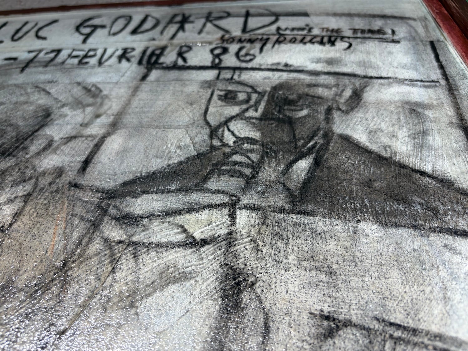 Sakanashi Tetsuro has run a small jazz bar in Osaka's Tenmabashi for 47 years. Using paper plates as his palette and paint as his medium, he creates works in the bar's space, transforming it into his studio after closing hours. His paintings, rendered on corkboard panels, feature portraits of jazz musicians, scenes with jazz records, and showcase his exceptional typographic sensibility. We also ship internationally.