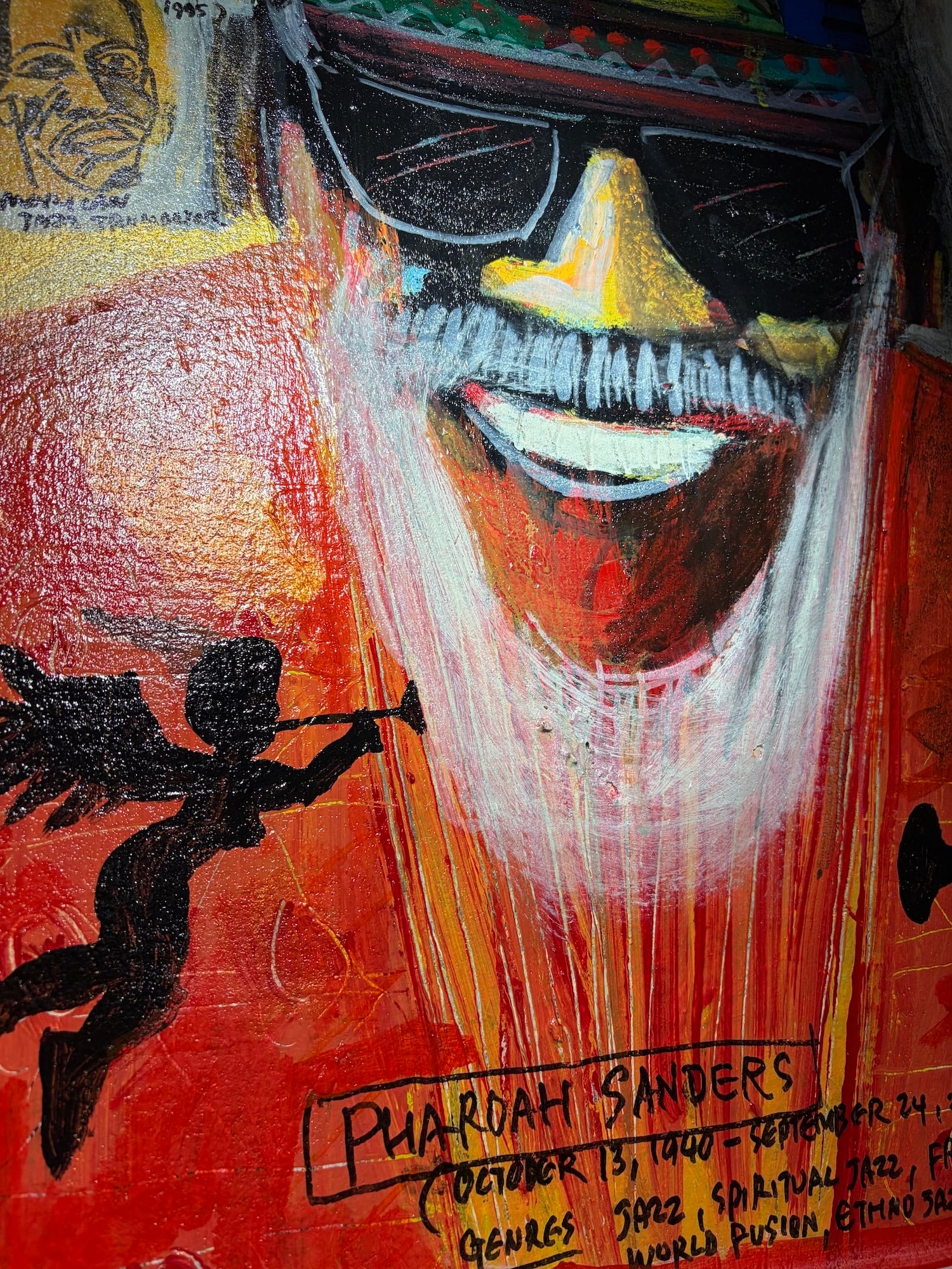 大阪・天満橋で47年間に渡り小さなジャズバーを営む、さかなしてつろう。 紙皿をパレットに、ペンキを画材に、営業時間外の店内をアトリエに作品を制作するさかなし。コルクボードのパネルに描かれるのはジャズメンのポートレイト、ジャズのレコードがある風景、タイポグラフィのセンスも秀逸なペインティング作品です。海外発送も承ります。