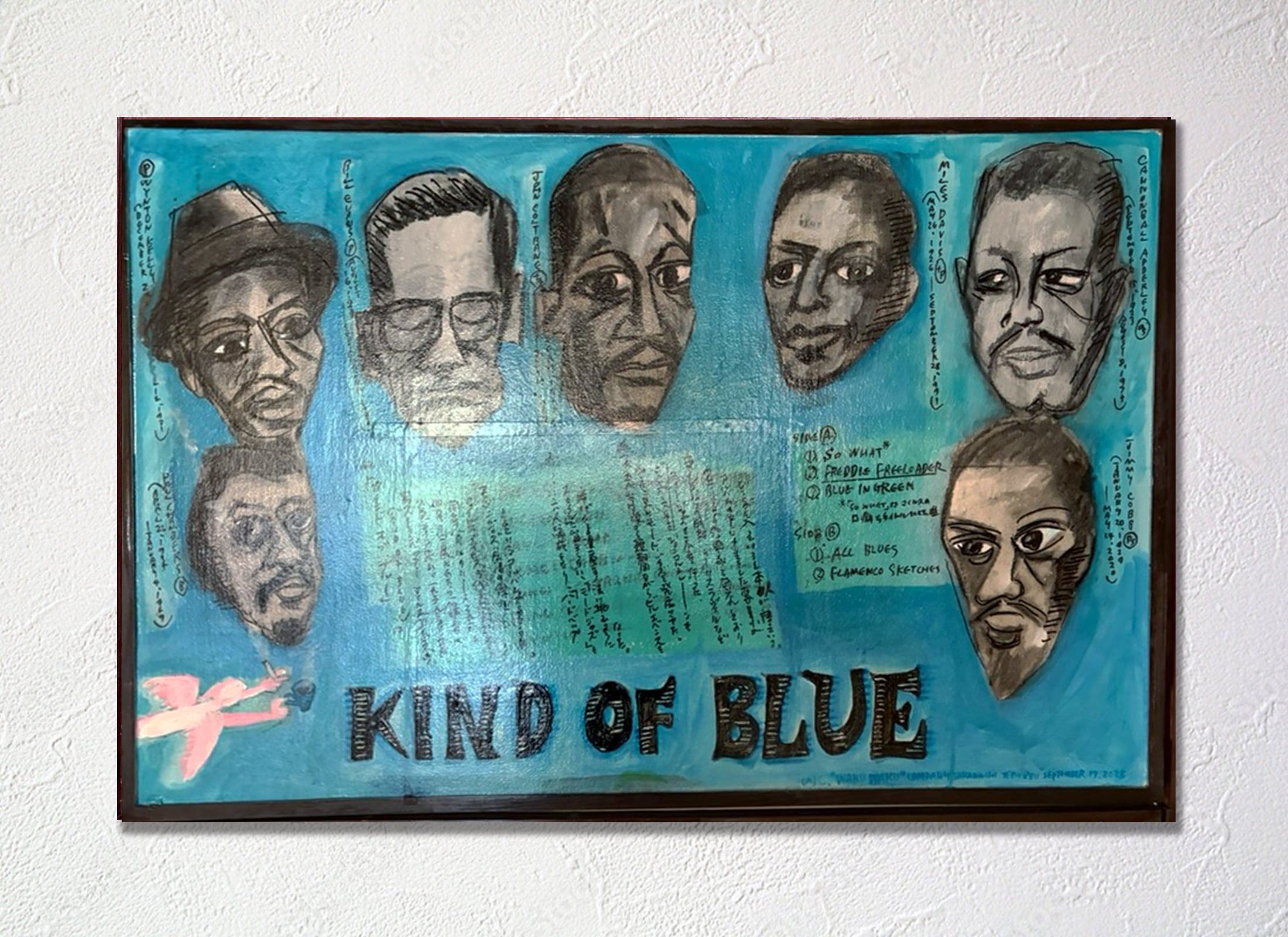 大阪・天満橋で47年間に渡り小さなジャズバーを営む、さかなしてつろう。 紙皿をパレットに、ペンキを画材に、営業時間外の店内をアトリエに作品を制作するさかなし。コルクボードのパネルに描かれるのはジャズメンのポートレイト、ジャズのレコードがある風景、タイポグラフィのセンスも秀逸なペインティング作品です。海外発送も承ります。