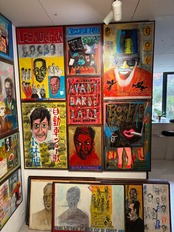 大阪・天満橋で47年間に渡り小さなジャズバーを営む、さかなしてつろう。 紙皿をパレットに、ペンキを画材に、営業時間外の店内をアトリエに作品を制作するさかなし。コルクボードのパネルに描かれるのはジャズメンのポートレイト、ジャズのレコードがある風景、タイポグラフィのセンスも秀逸なペインティング作品です。海外発送も承ります。