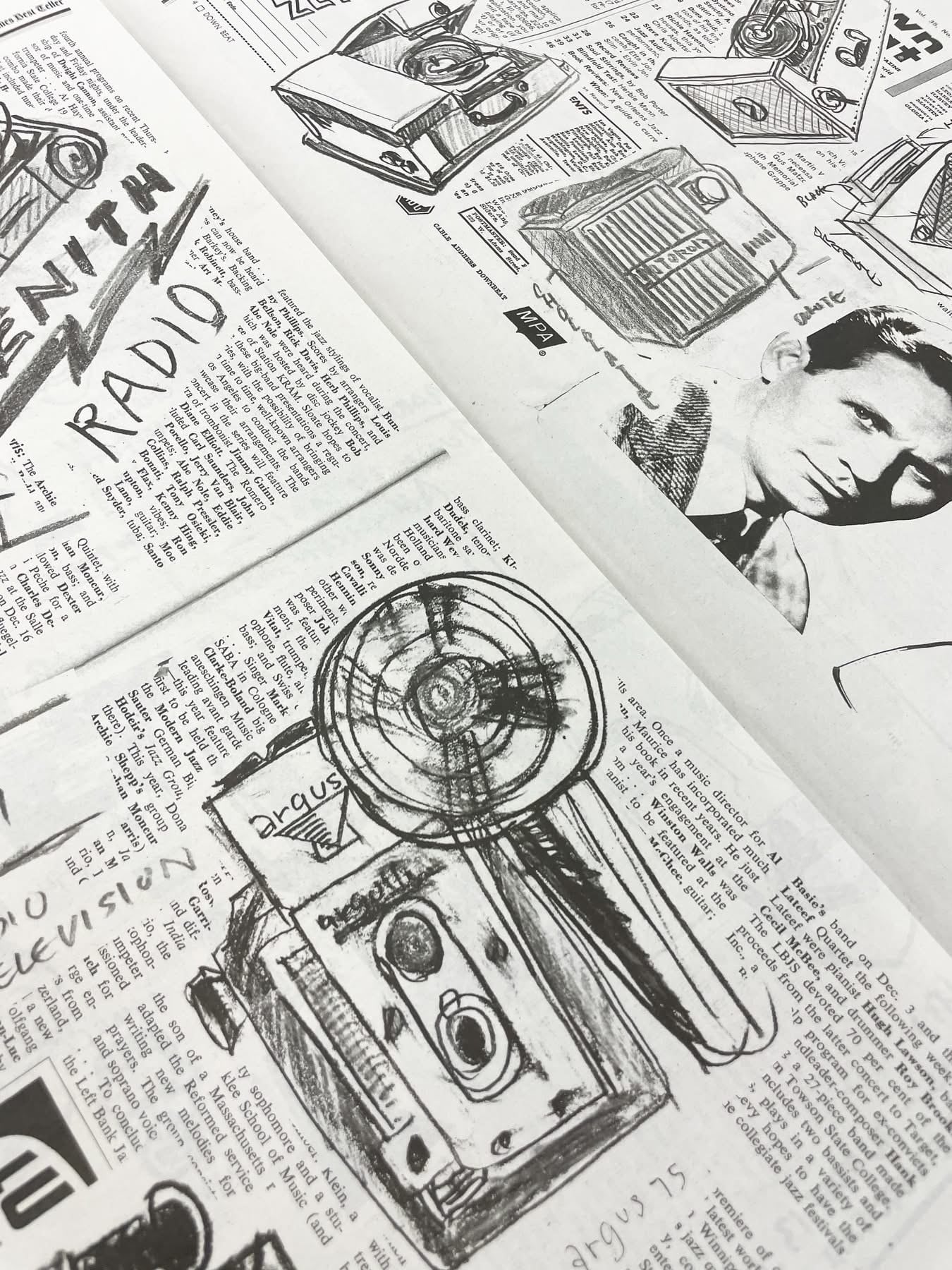 さかなしてつろう個展「 Portrait in…」のために制作されたドローイング作品集。タブロイド新聞サイズで輪転機で印刷。モノクロ12ページです。レターパックでお届けします。