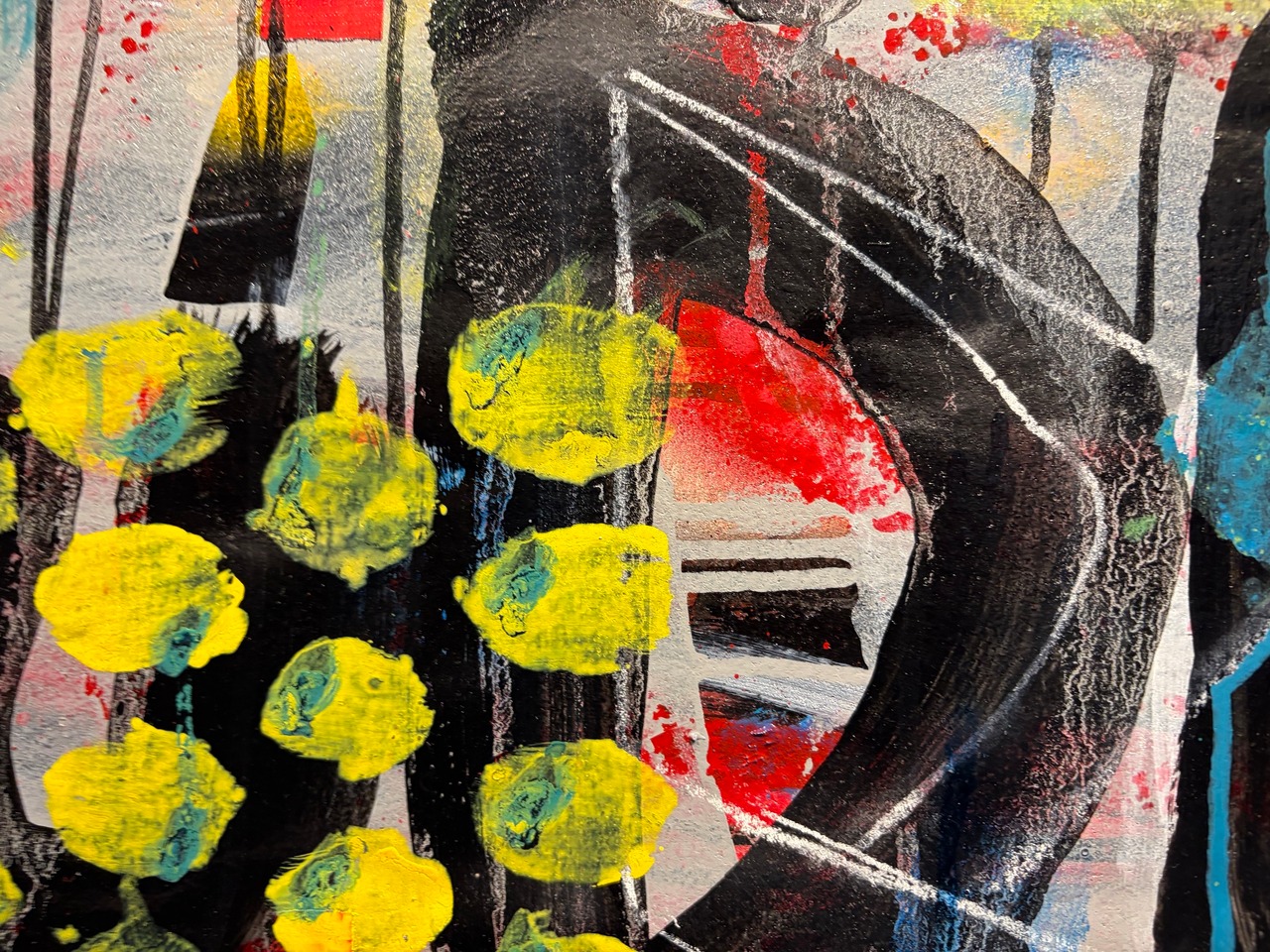 Corkboard, paint, mixed media